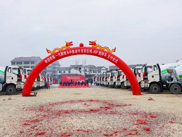 新年開門紅,凌宇交車忙。近日來(lái),在有著“紅色搖籃”、“革命圣地”美譽(yù)的江西省井岡山地區(qū)舉行了一場(chǎng)盛大的活動(dòng)——一汽解放&中集凌宇J6P攪拌車交付儀式。江西客戶訂購(gòu)的60臺(tái)一汽解放&中集凌宇一體化攪拌車首批20臺(tái),在吉安峽江正式交付。此次活動(dòng)由一汽解放、中集凌宇與代理商聯(lián)合舉辦。