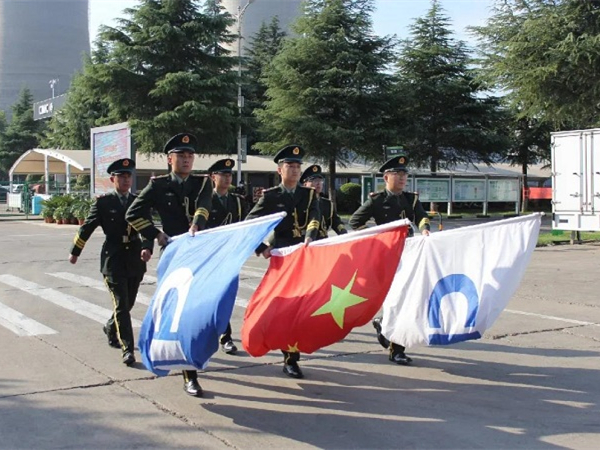 上午8點(diǎn)30分,升旗儀式準(zhǔn)時(shí)開始。在員工方隊(duì)的注視下,英姿颯爽的升旗手們邁著整齊矯健的步伐,護(hù)送鮮艷的五星紅旗和中集旗幟入場。