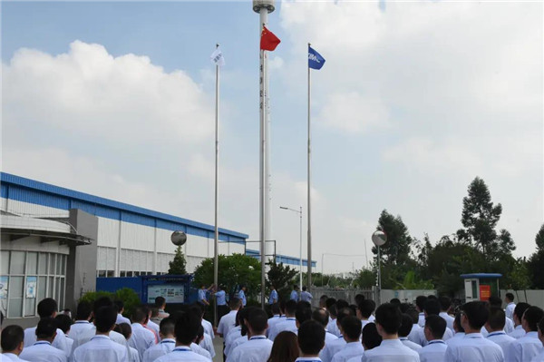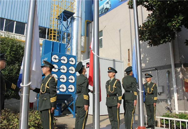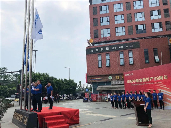 伴隨著雄厚、豪邁的和中集之歌,五星紅旗和中集旗幟先后冉冉升起,隨風(fēng)飄揚(yáng),在場的每一個(gè)人昂首挺胸,向和中集旗行注目禮,滿懷崇高的敬意和對中集無限的祝福。
