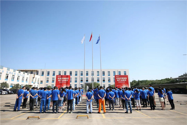 中集凌宇公司總經(jīng)理劉寶山、公司領(lǐng)導(dǎo)許治宇、王長鎖、王軍及各部門領(lǐng)導(dǎo)和員工代表共計(jì)300余人齊聚公司升旗廣場,為集團(tuán)獻(xiàn)上真摯的生日祝福。